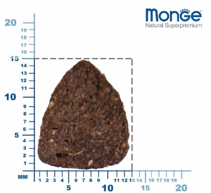 Dienos normą (žr. lentelę) patariama padalyti į 2 porcijas. Šuo gali ėsti daugiau arba mažiau, tai priklauso nuo amžiaus, temperamento ir aktyvumo lygio. Pradedant šerti Monge pirmą kartą, rekomenduojame pereiti nuo kito ėdalo palaipsniui, per 4 dienas, senojo ėdalo kiekį mažindami, o naujojo kiekį didindami. Šuns indelyje visada turi būti švaraus geriamo vandens.