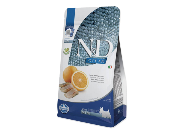 N&D Ocean sausas maistas suaugusiems mažų veisliu šunims su silke ir apelsinais 800g