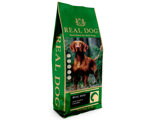 Real Dog SP pašaras suaugusiems vidutinio dydžio veislių šunims, su ėriena, ryžiais ir tapijoka 12 kg