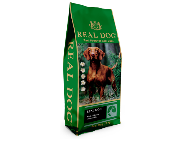 Real Dog SP Pašaras suaugusiems visų veislių šunims, su elniena, ryžiais ir tapijoka 12 kg