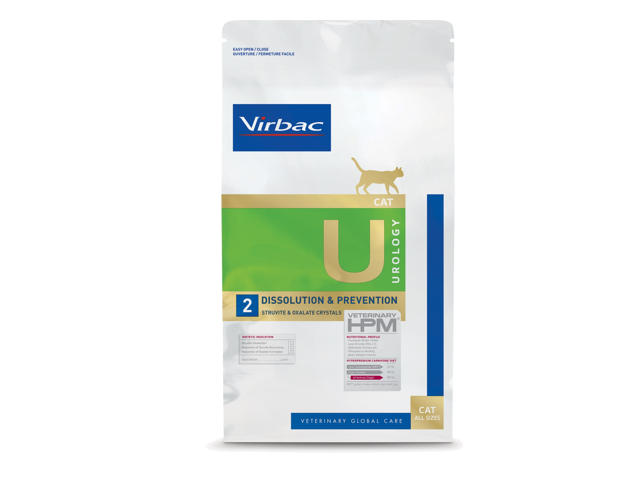 Katės dažnai yra ypač jautrios šlapimo takų ligoms. Jos gali pasireikšti šlapimo ar oksalato akmenų susidarymu ir turėti nemalonių pasekmių jūsų augintiniui. „Virbac Veterinary HPM Cat Urology Dissolution & Prevention U2“ yra dietinis sausas ėdalas, kuris optimaliai palaiko jūsų katę.