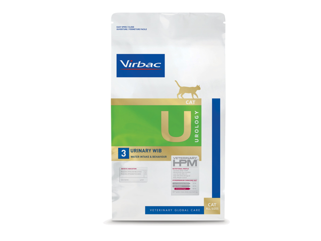 Virbac Veterinary HPM Cat Urology Water Intake & Behavior U3“ yra dietinis sausas ėdalas suaugusioms katėms, specialiai sukurtas siekiant sumažinti struvitų ir oksalatų akmenų susidarymą ir palaikyti normalią šlapimo takų veiklą.